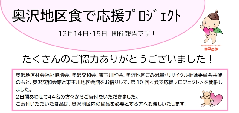 奥沢地区〈食で応援プロジェクト〉開催報告