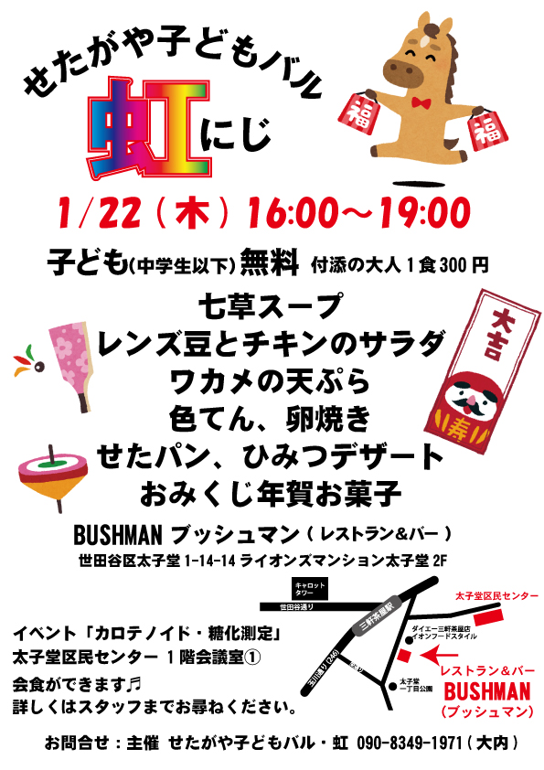 1月子ども食堂「せたがや子どもバル・虹」のお知らせ