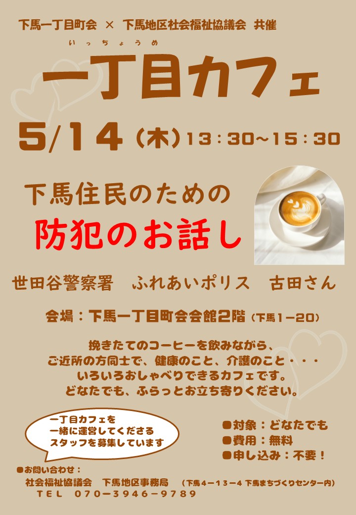 【下馬】一丁目カフェ「防犯のお話し」