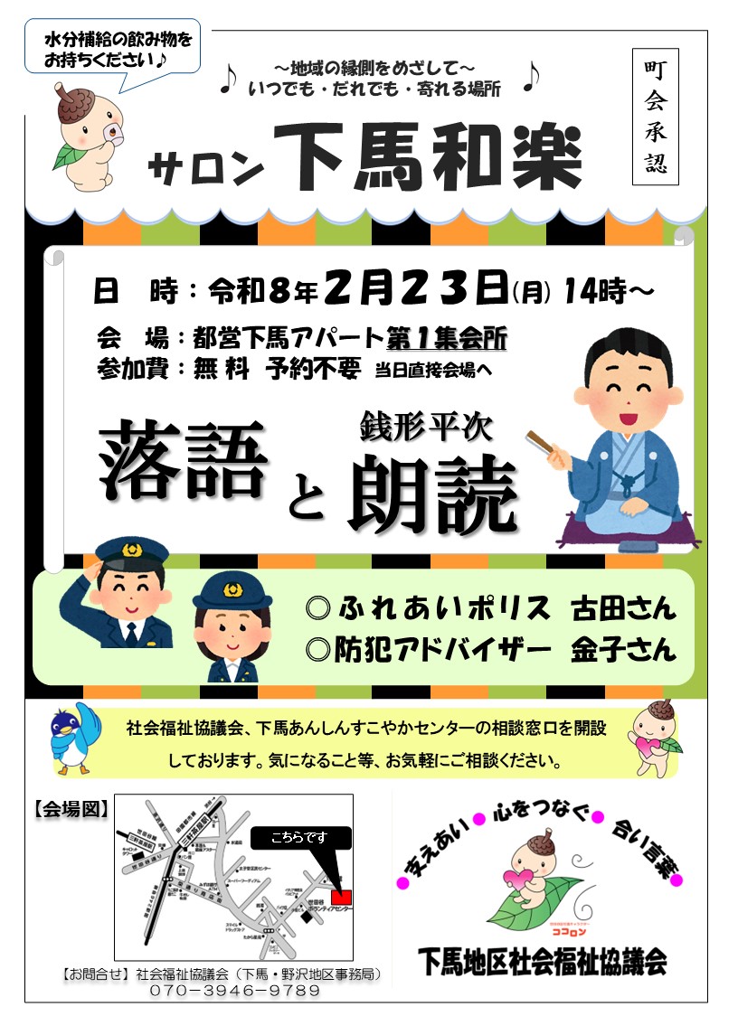 2月 サロン下馬和楽 落語と朗読「銭形平次」