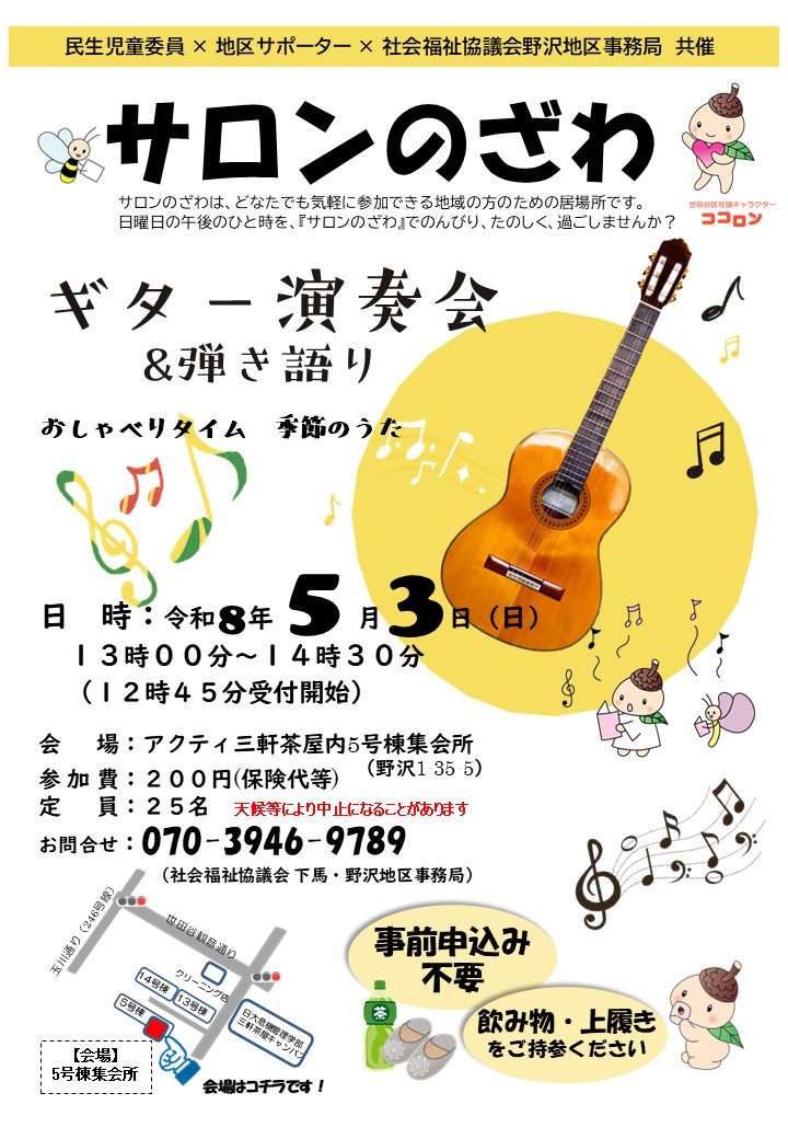 5月 サロンのざわ ギター演奏会&弾き語り