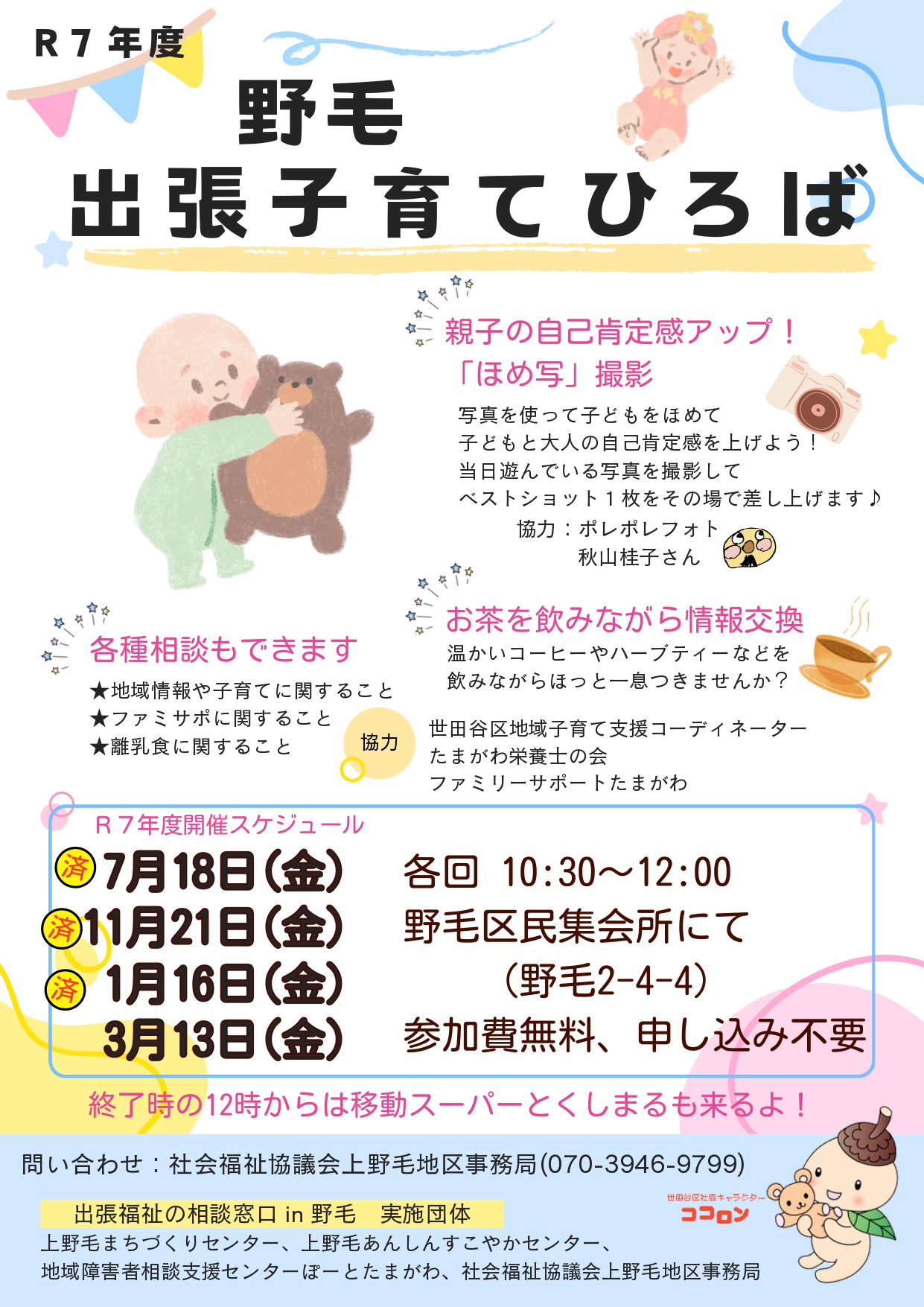 | 問い合わせ先 | 社会福祉協議会上野毛地区事務局 ☎070-3946-9799 |
