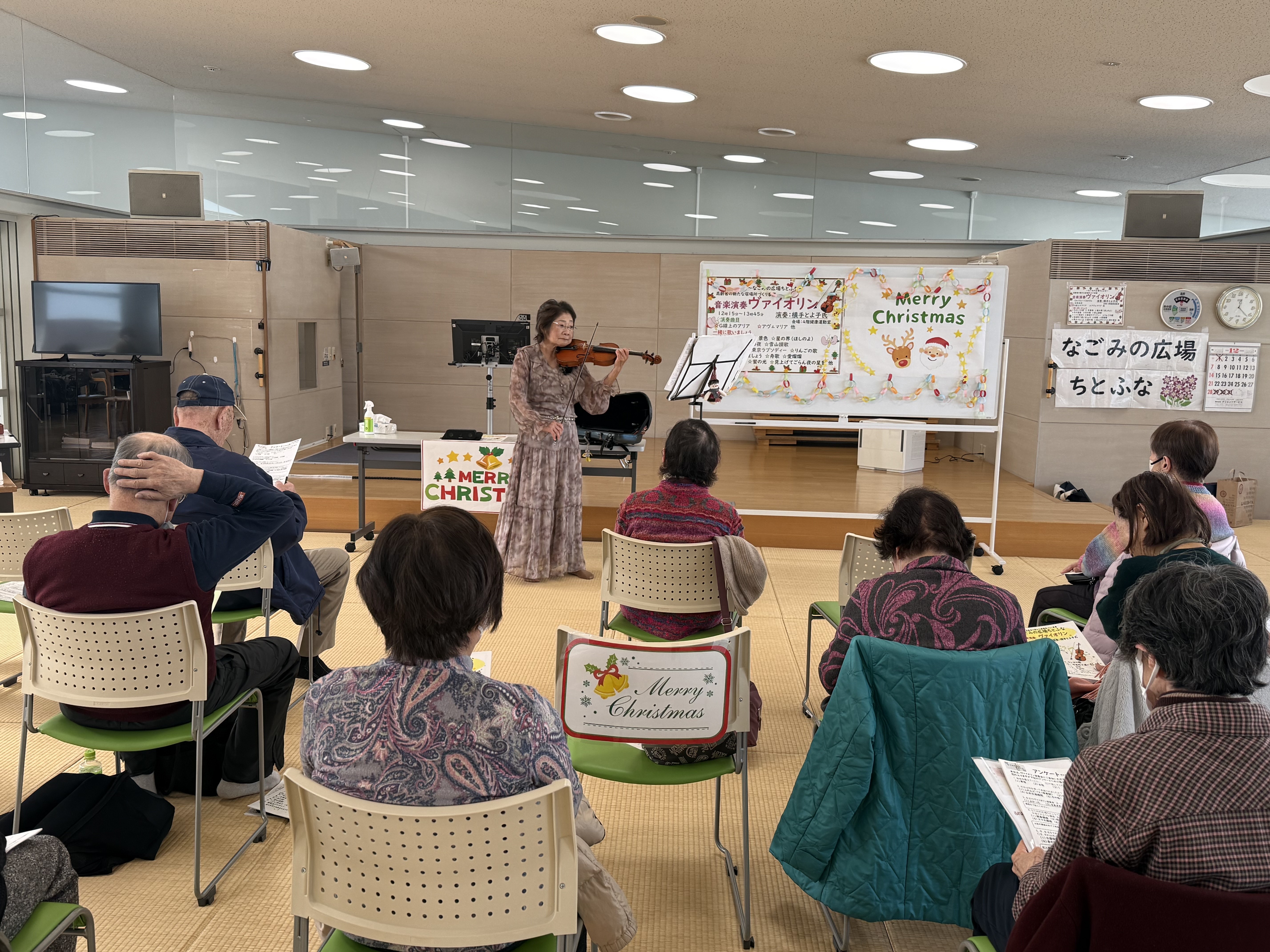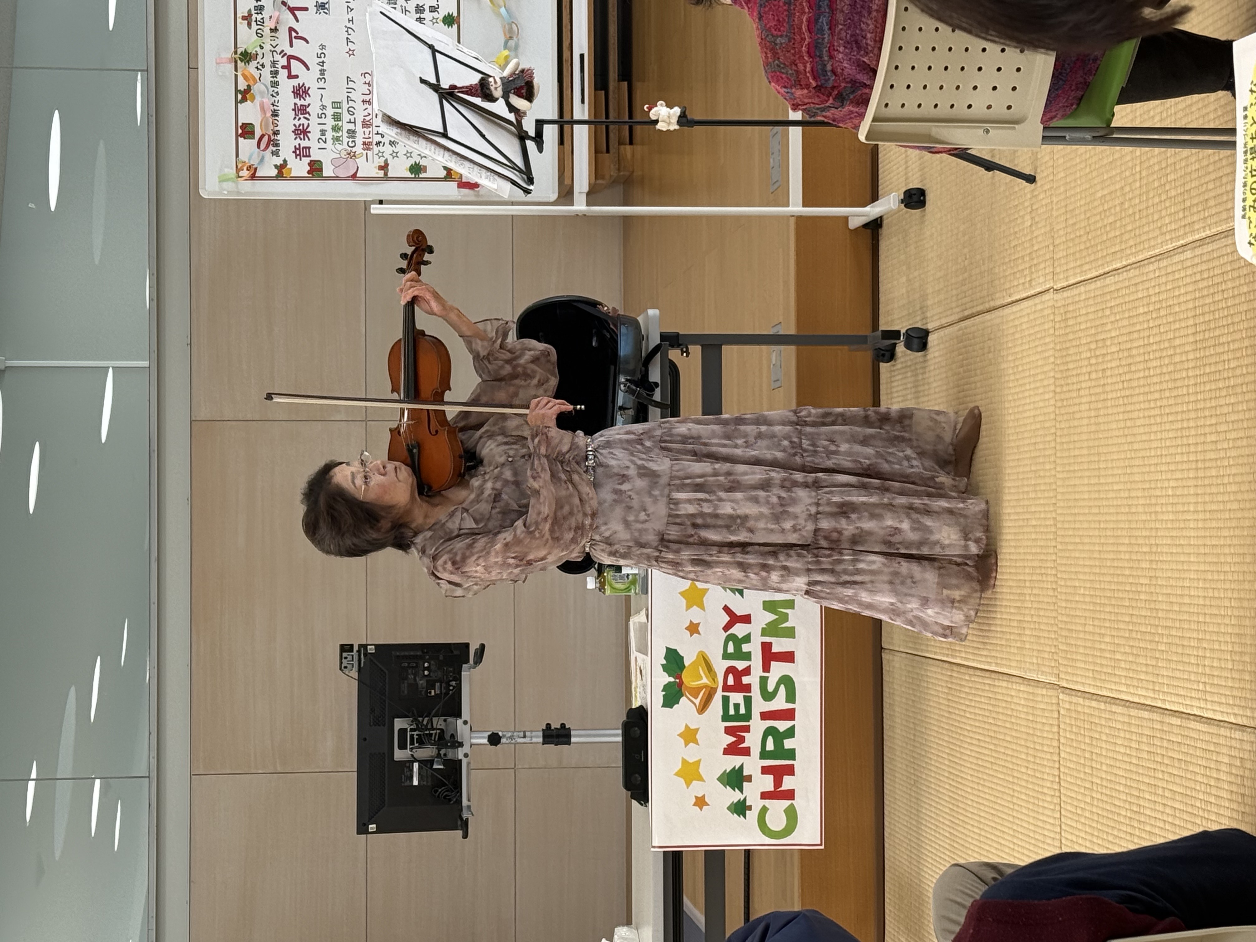 演奏は、バッハの「G線上のアリア」から始まり、「アヴェ・マリア」、クリスマスメドレーへと続き、会場はゆったりとした雰囲気に包まれました。