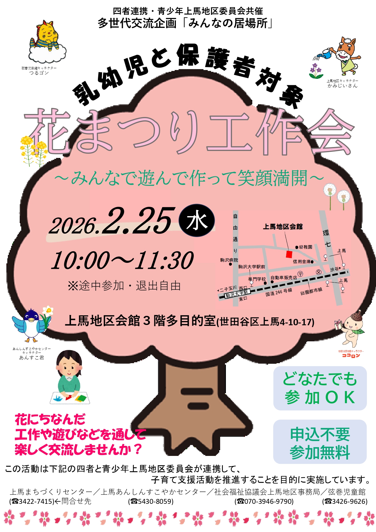 | 問い合わせ先 | 上馬まちづくりセンター 03-3422-7415 (平日8:30~17:00) |