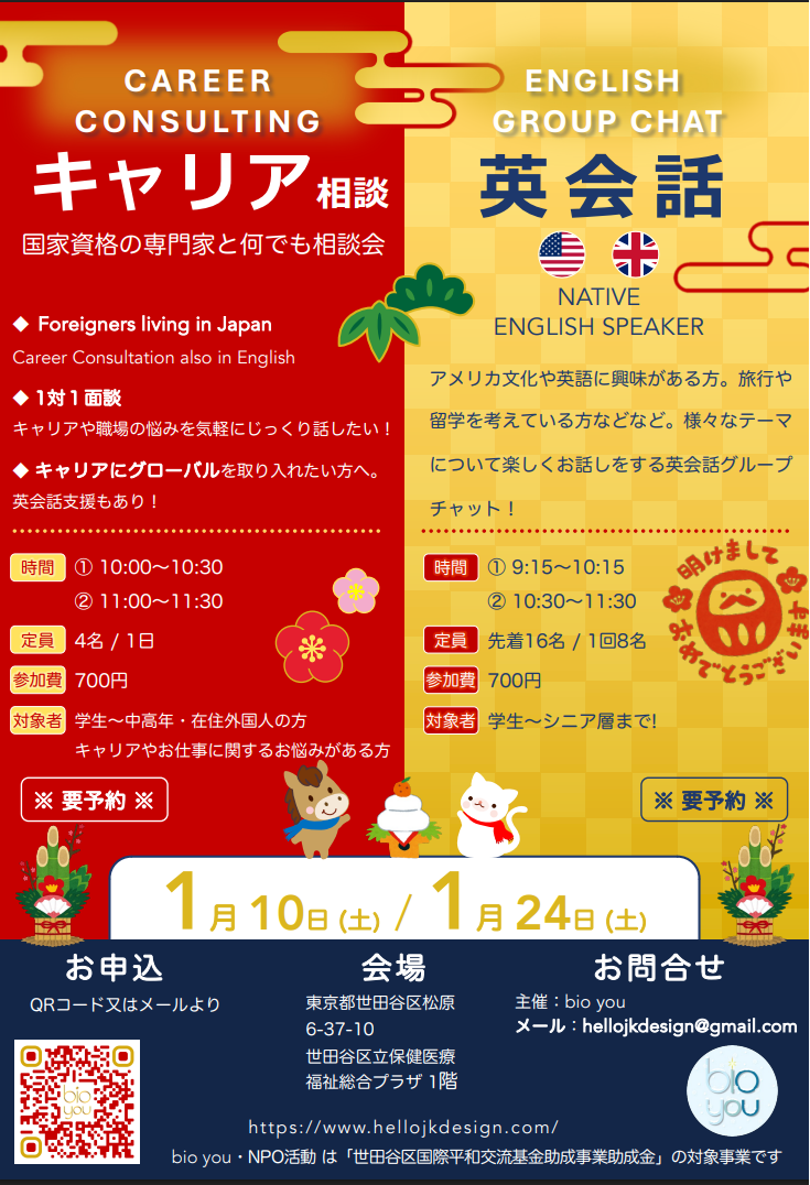 [1/10, 1/24!国家資格キャリアコンサルタントのお悩み相談(English対応) / アメリカ人による英会話グループチャット]