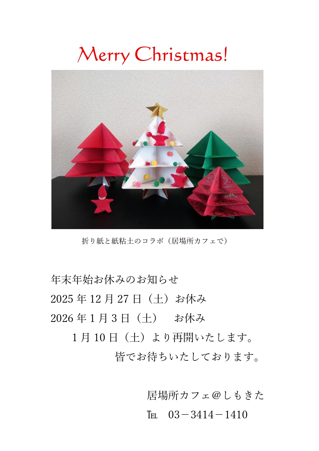 『居場所カフェ@しもきた』年末年始お休みのお知らせです☆