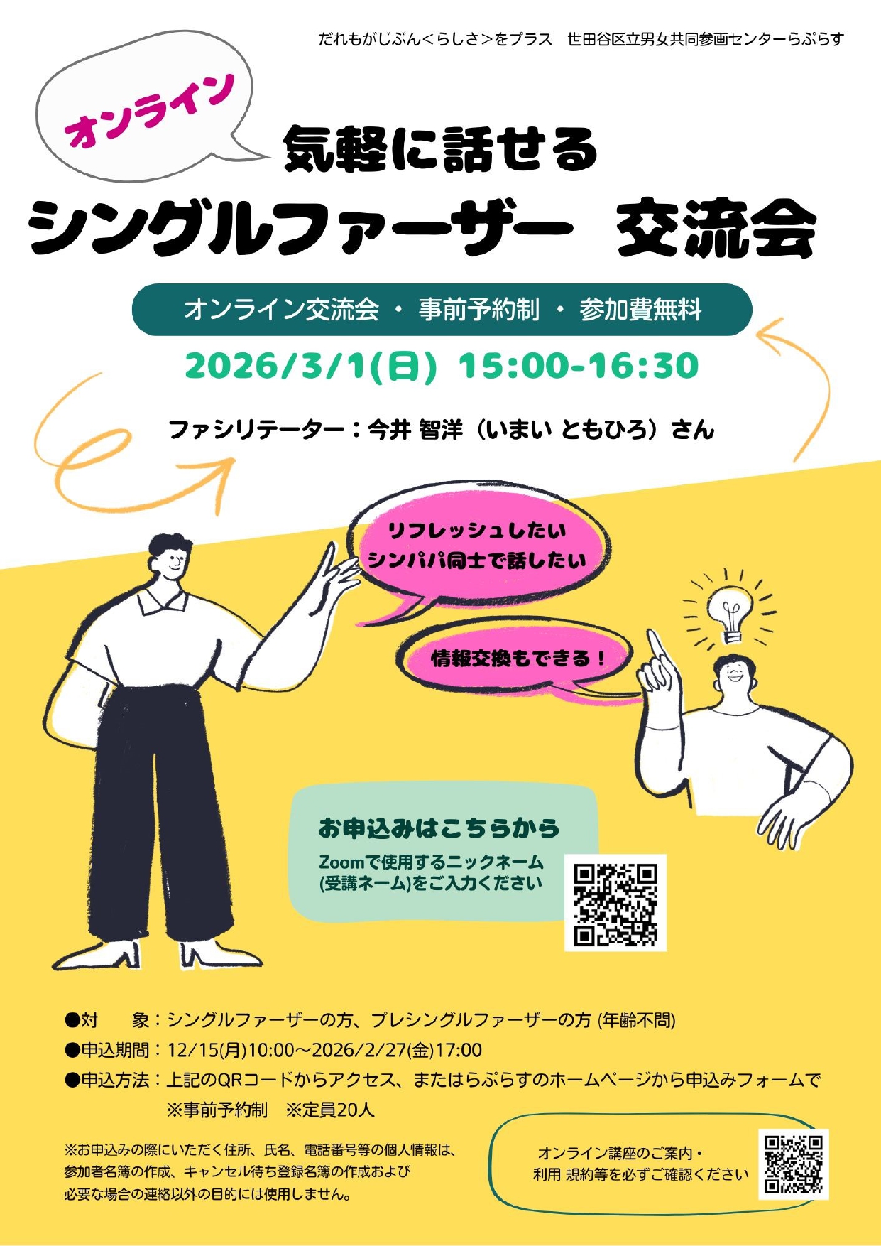 『気軽に話せるシングルファーザー交流会<オンライン>』