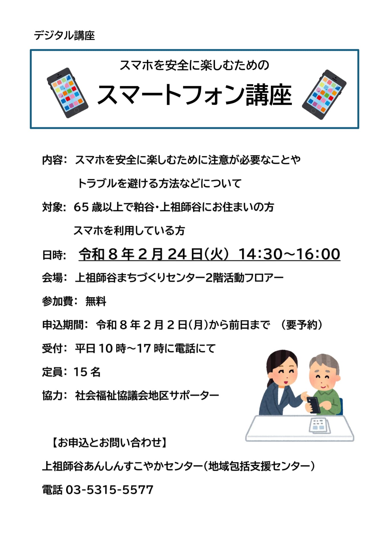 「スマホを安全に楽しむためのスマートフォン講座」開催のお知らせ
