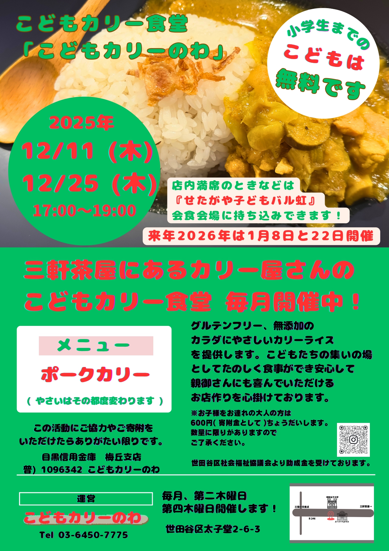 12月子ども食堂「こどもカリーのわ」のお知らせ