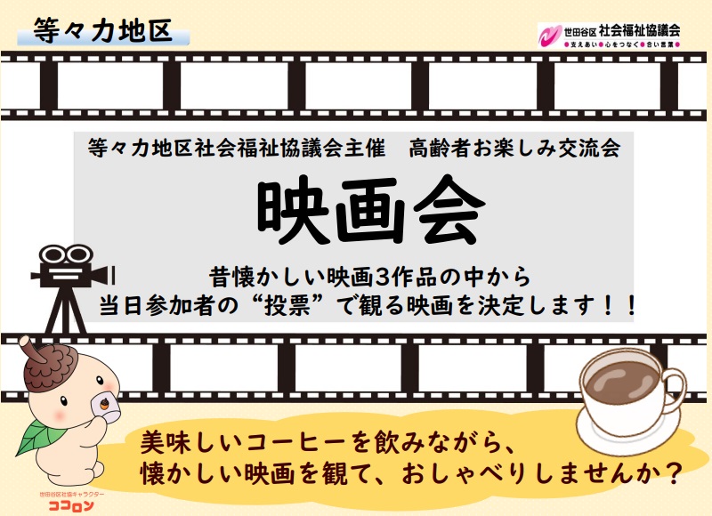 高齢者お楽しみ交流会 等々力・映画会のお知らせ
