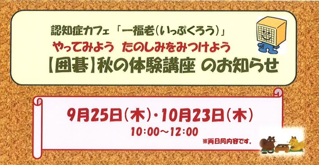 【囲碁】 認知症カフェ 「一福老(いっぷくろう)」体験講座のお知らせ