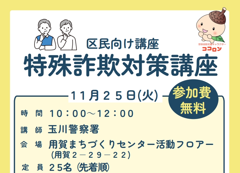 【用賀地区】区民向け講座「特殊詐欺対策講座」のご案内