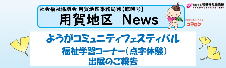 ようがコミュニティフェスティバル 福祉学習コーナー出展のご報告