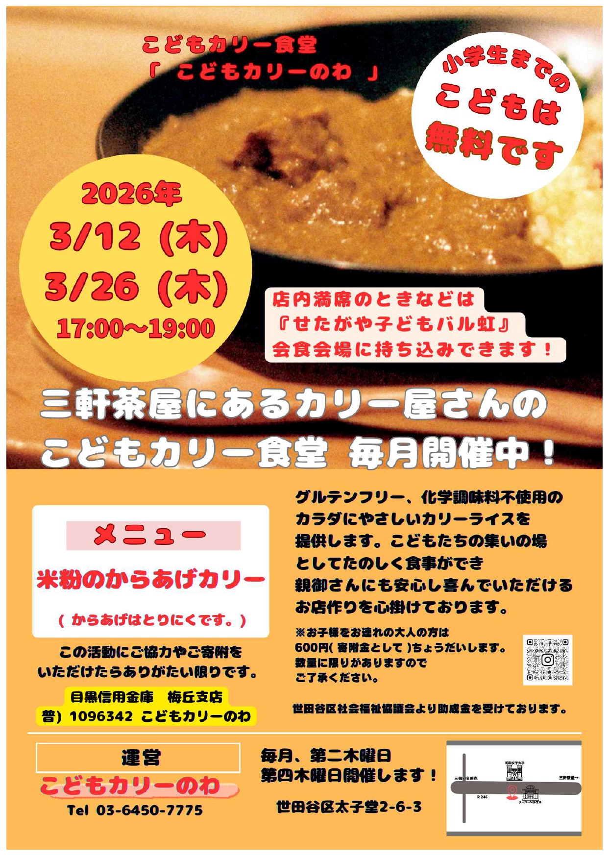 3月子ども食堂「こどもカリーのわ」のお知らせ