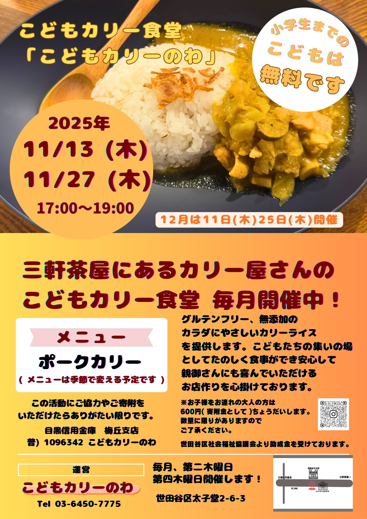 11月子ども食堂「こどもカリーのわ」のお知らせ