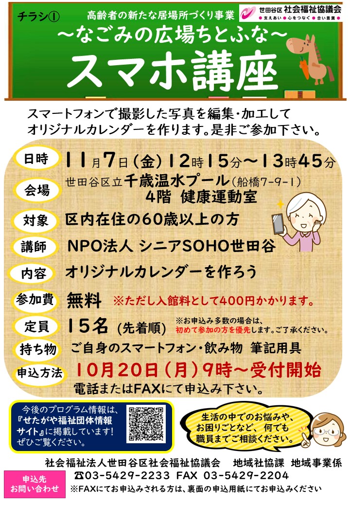 高齢者の新たな居場所づくり事業(なごみの広場ちとふな)スマホ講座(オリジナルカレンダー作り)11/7