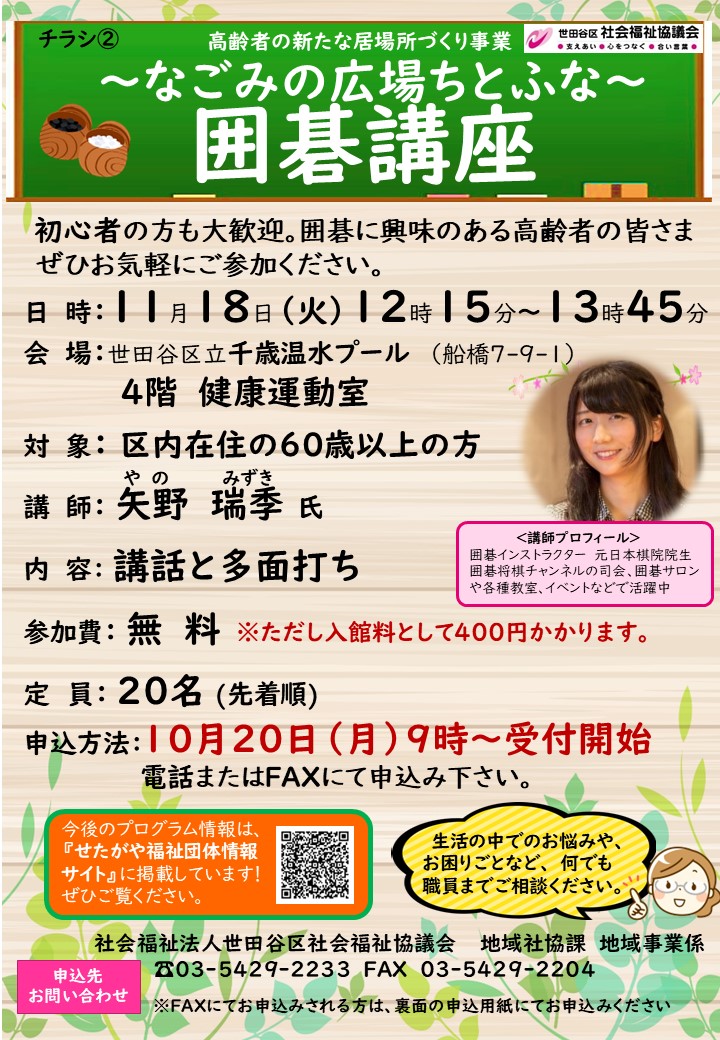 高齢者の新たな居場所づくり事業(なごみの広場ちとふな)囲碁講座(11/18)
