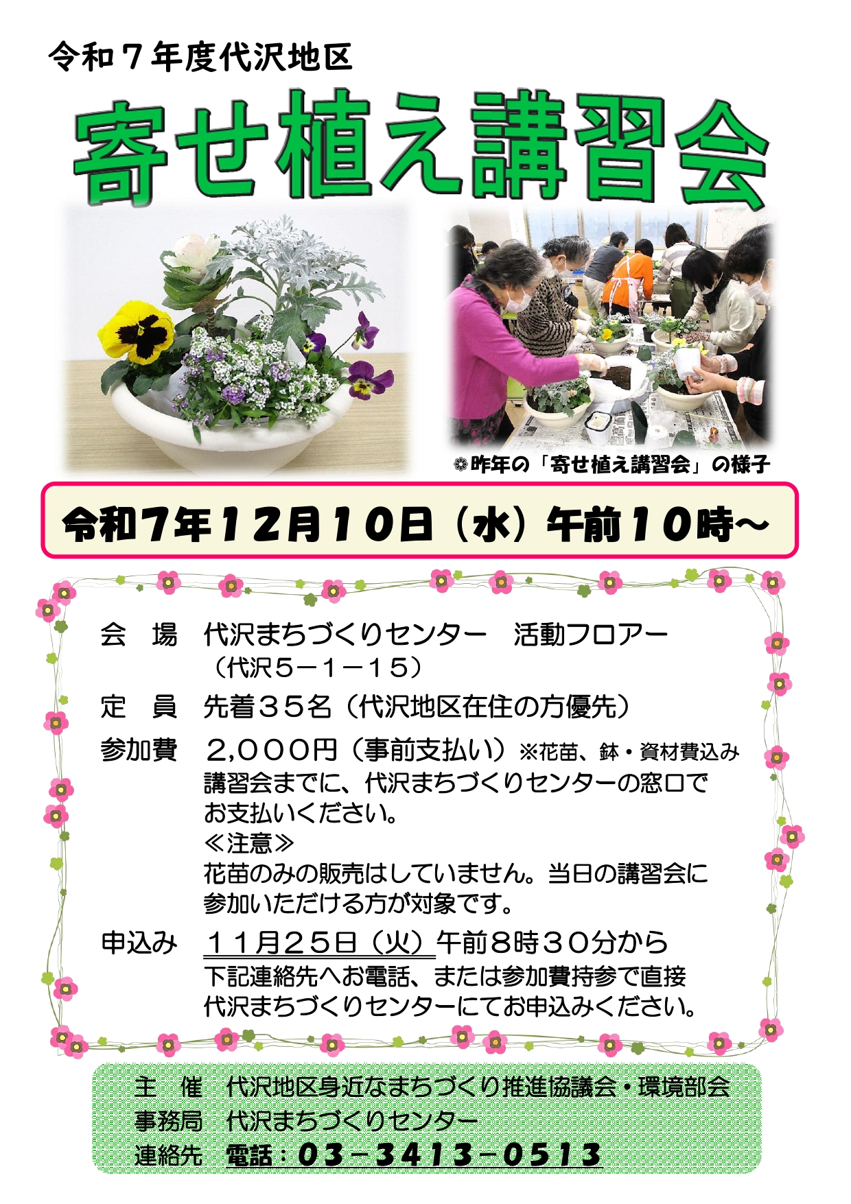 ☆代沢地区『寄せ植え講習会』開催のお知らせです☆