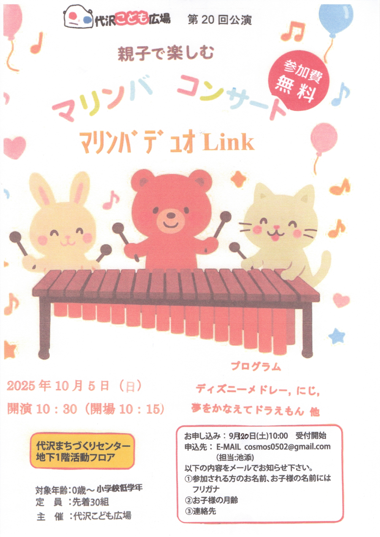 ♪『マリンバコンサート』開催のお知らせ♪