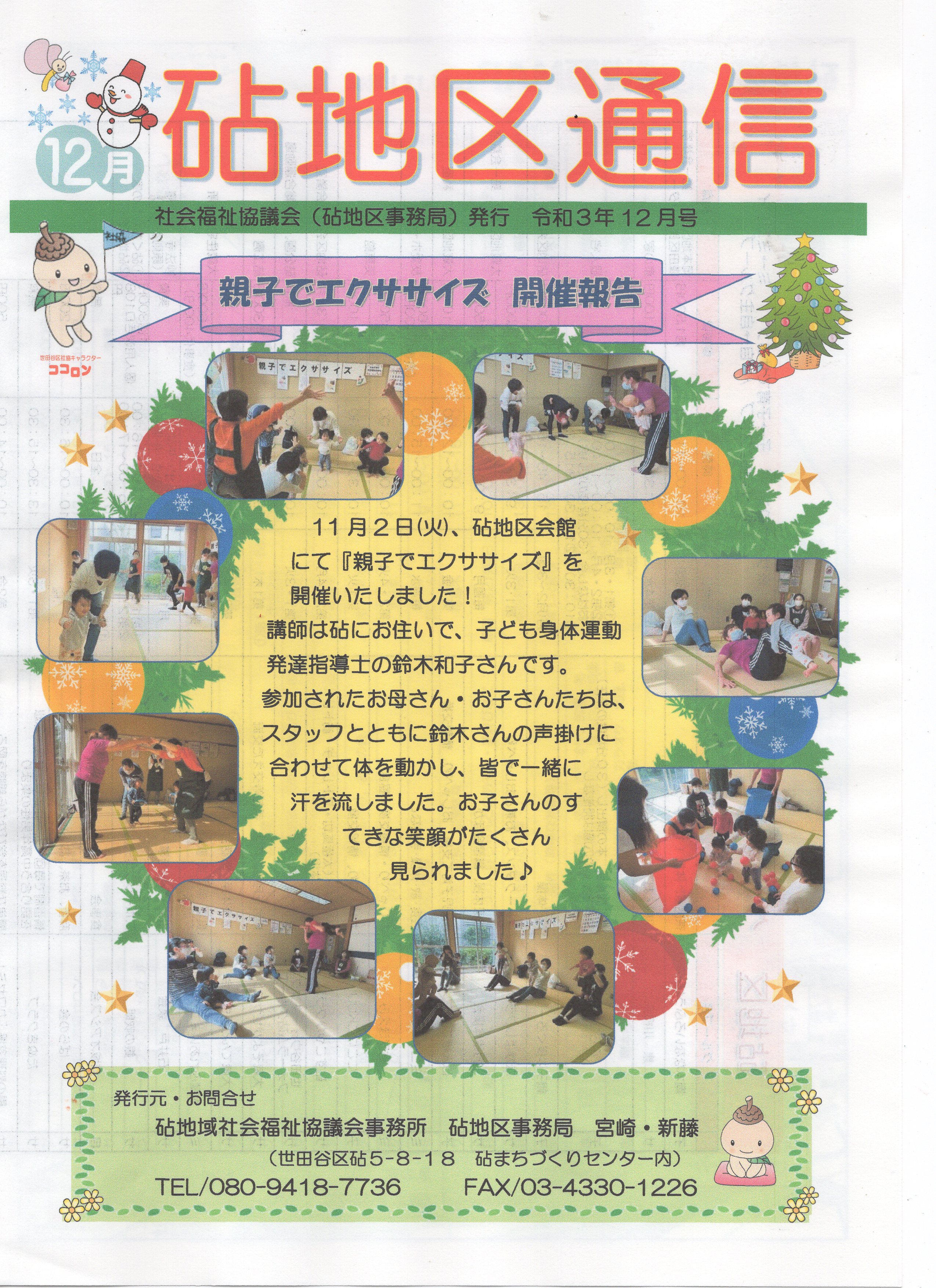 今月号は、砧地区の子育て事業『親子でエクササイズ』のご報告です。