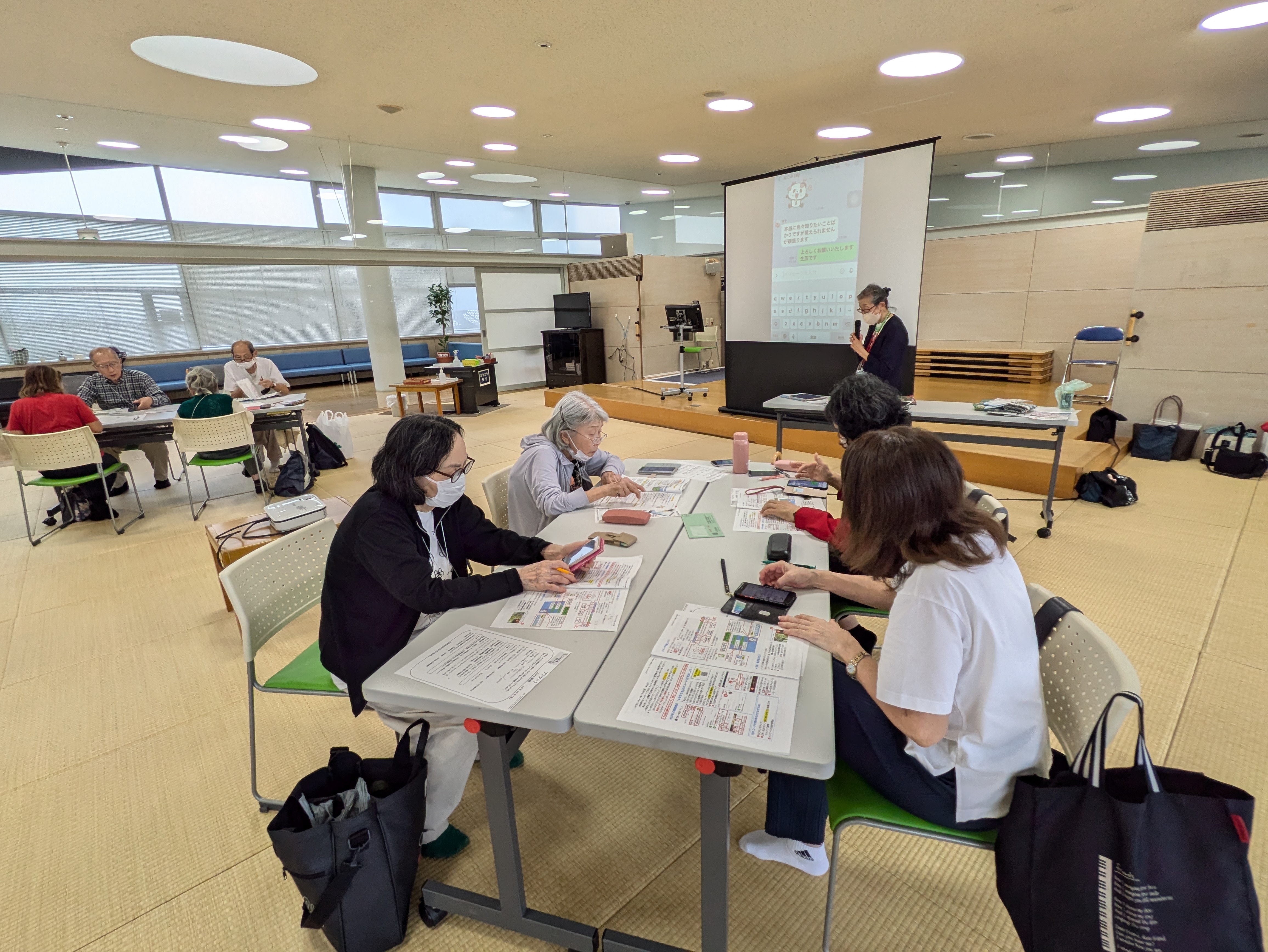講座では、前回の振り返りの後、二次元コード(QRコード)の読み取り方法、LINEの活用方法やセキュリティ設定などについて学びました。参加者同士でも教えあったりしながら楽しい時間になりました。
