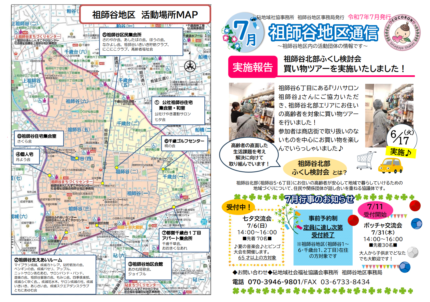 今月号は祖師谷北部ふくし検討会主催の『買い物ツアー』実施のご報告を掲載いたしました。