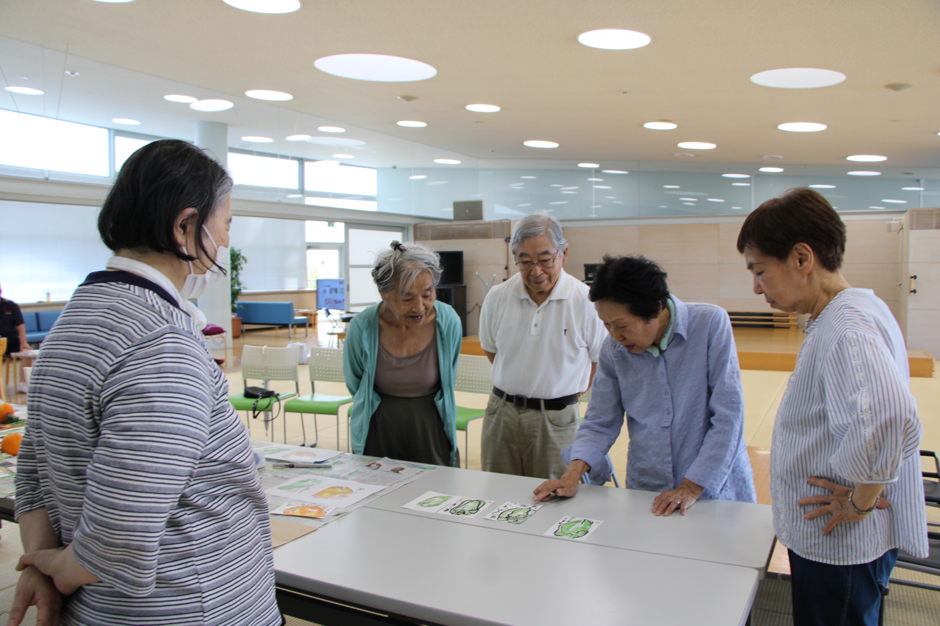 絵手紙講座の講師には、関口 敏子氏(日本絵手紙協会公認講師)をお招きし、夏野菜「ピーマン」を描きました。講師から『下書きなしの一発勝負、下手なんて気にしないで思いっきり描く』との言葉に、初めは小さく描いていた絵も本番のはがきには、墨を使い、ダイナミックに描いていました。