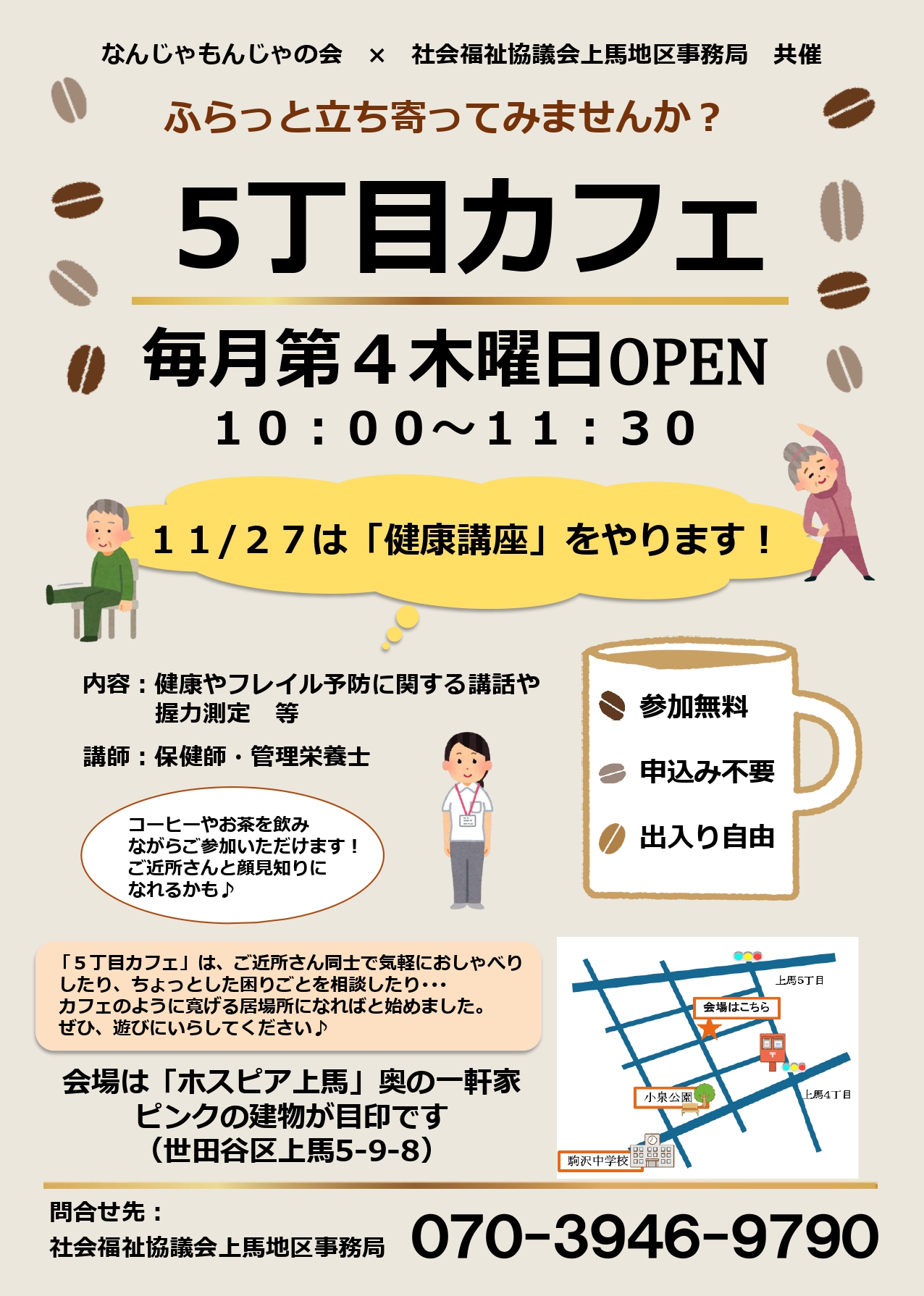 | 問い合わせ先 | 社会福祉協議会上馬地区事務局 ℡ 070-3946-9790 |