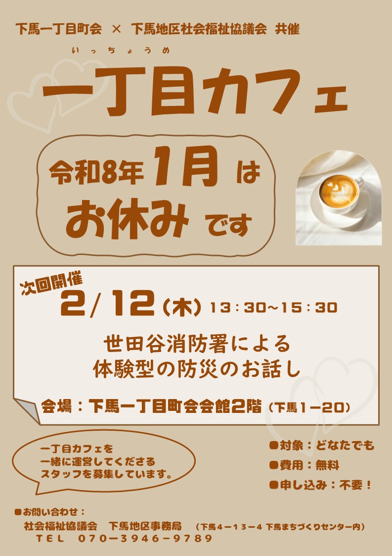 | 問い合わせ先 | 下馬地区社会福祉協議会 070-3946-9789 |