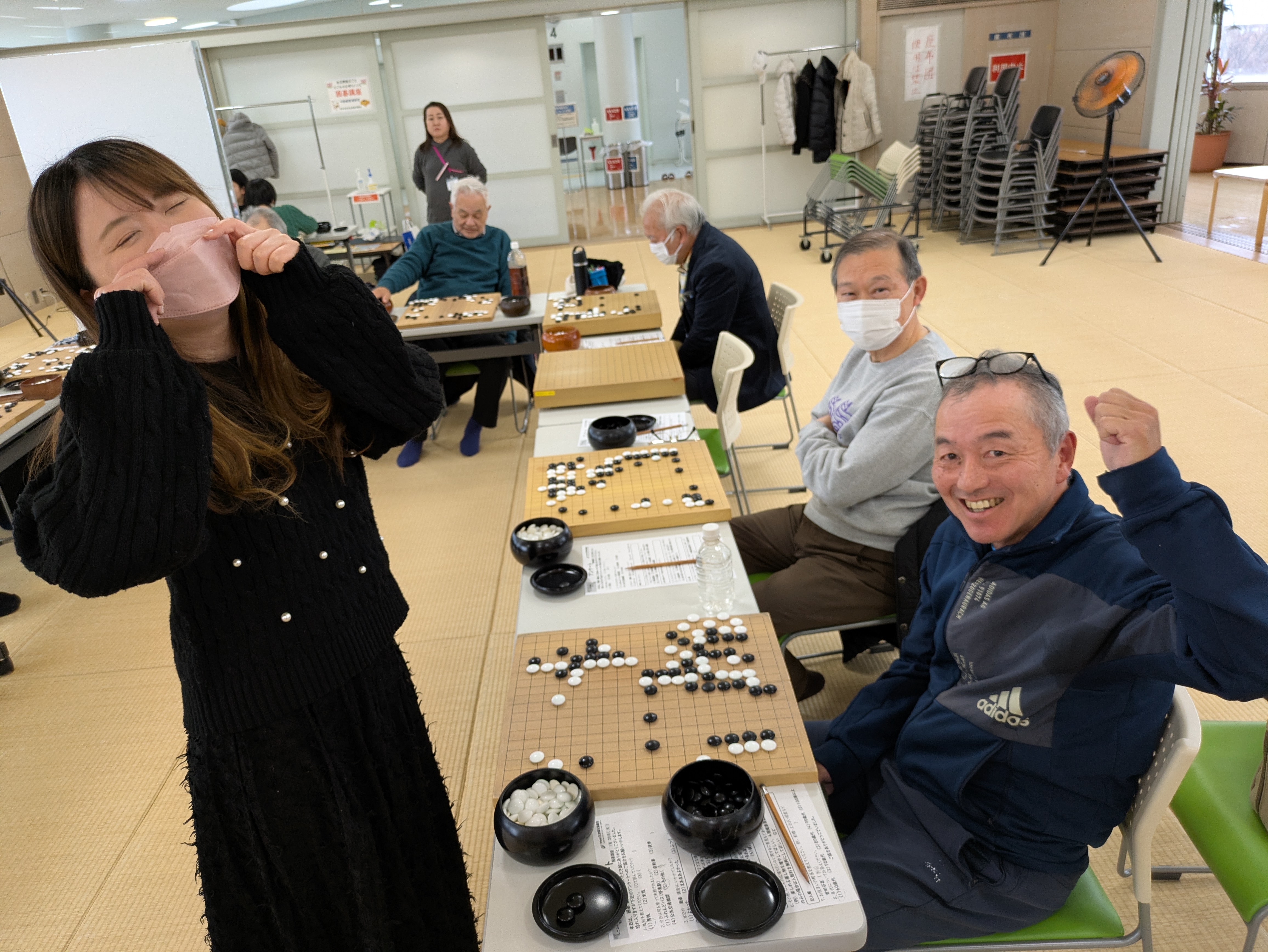 勝負が決まり始めると、自然と笑顔や声があふれ、和気あいあいとした雰囲気の中で囲碁を楽しまれていました。