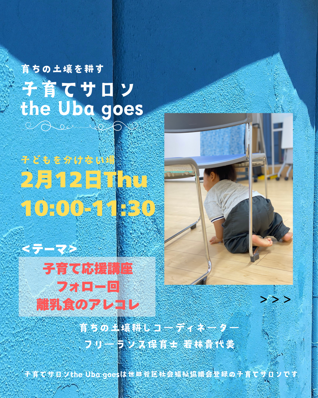社会福祉協議会 子育てサロン the Uba goesのお知らせです。先日の子育て応援講座【子どもと楽しむ離乳食】【保育士若林さんによる暮らしの中で育つ「食べる力」:あげ方と“お口を育てる”実践編】を開催しました。当日、聞きそびれてしまったこと、講座を受けて子どもの発達に合わせてどのように対処していいのかなど、日々の生活から見つける発達の土台等についてご相談などの対応をいたします。お気軽にご参加ください。