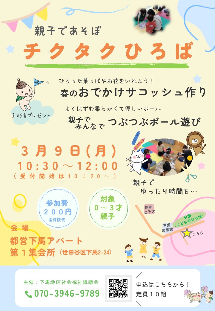 | 問い合わせ先 | 下馬地区社会福祉協議会 070-3946-9789 |