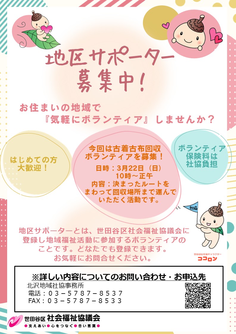 北沢地区では、「地区サポーター」を募集しています。