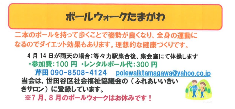 | 活動会費 | 参加費 100円(ポールレンタルの場合は200円) |