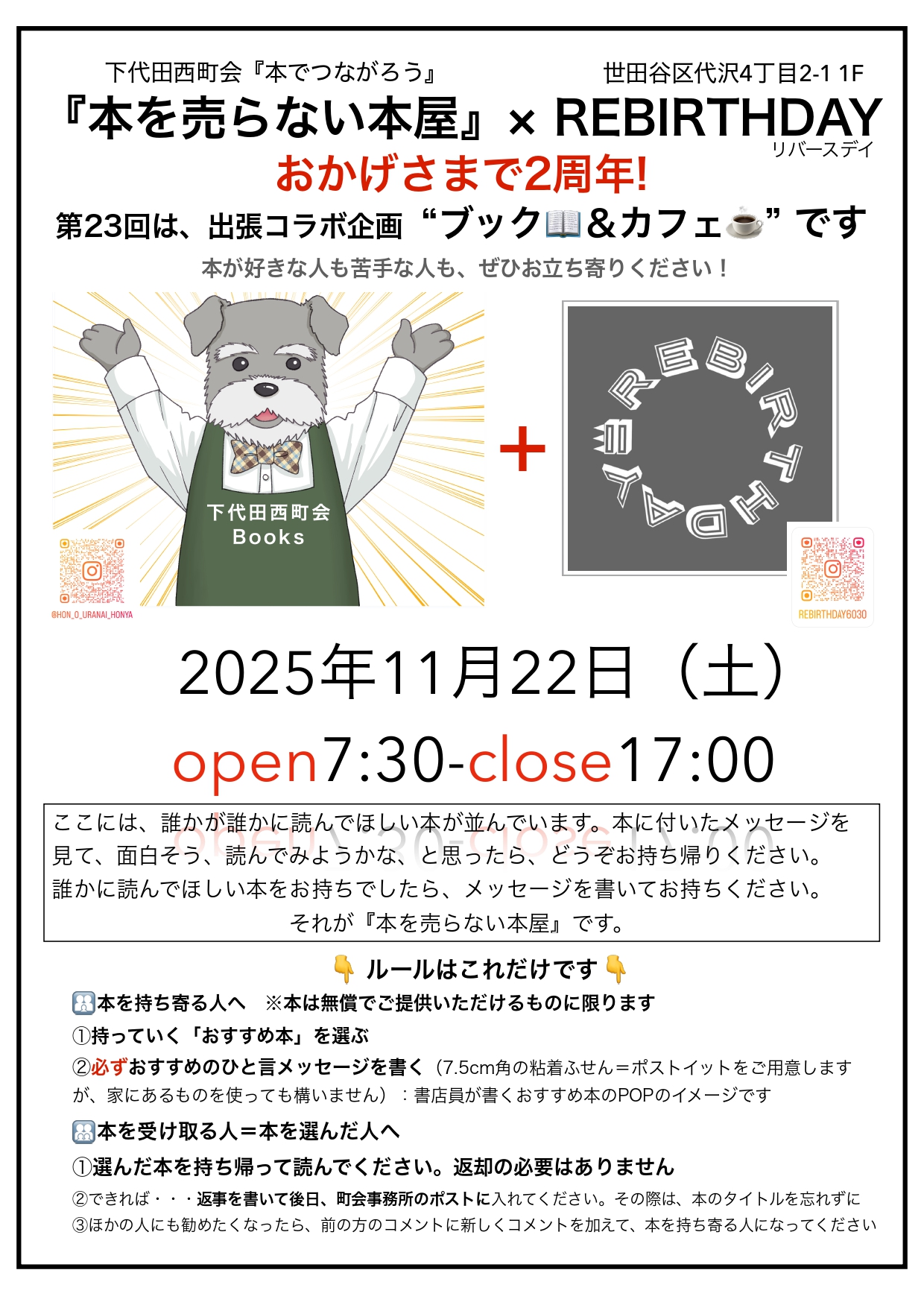 | 名称 | 下代田西町会『本を売らない本屋』 |