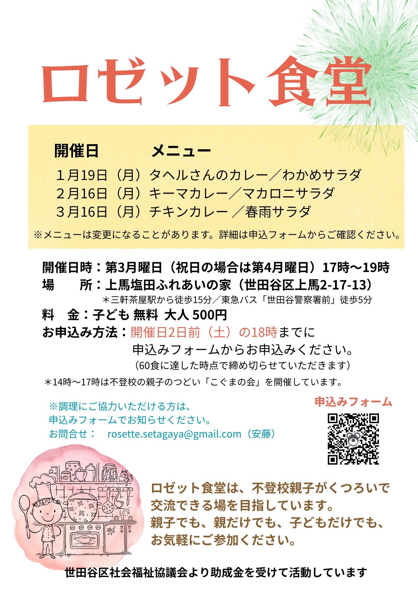 ロゼット食堂から♪お知らせ