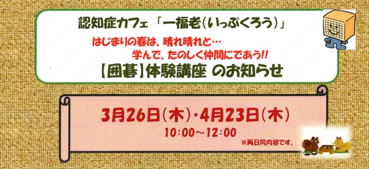 認知症カフェ『一福老・いっぷくろう』 囲碁体験講座のお知らせ