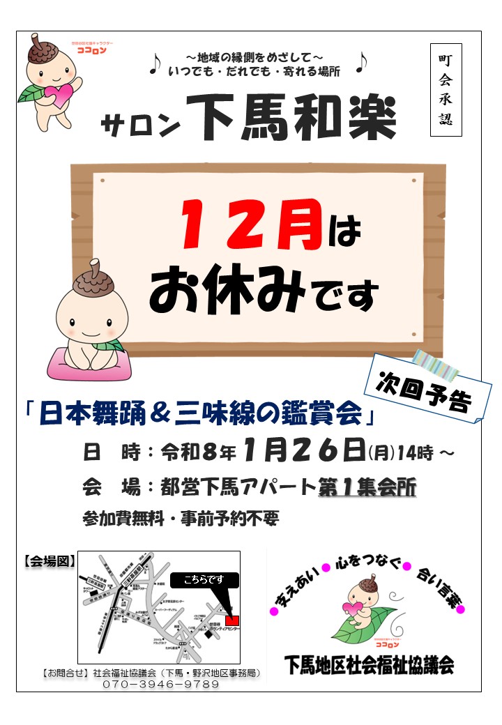 | 名称 | 社会福祉協議会 下馬・野沢地区事務局 |