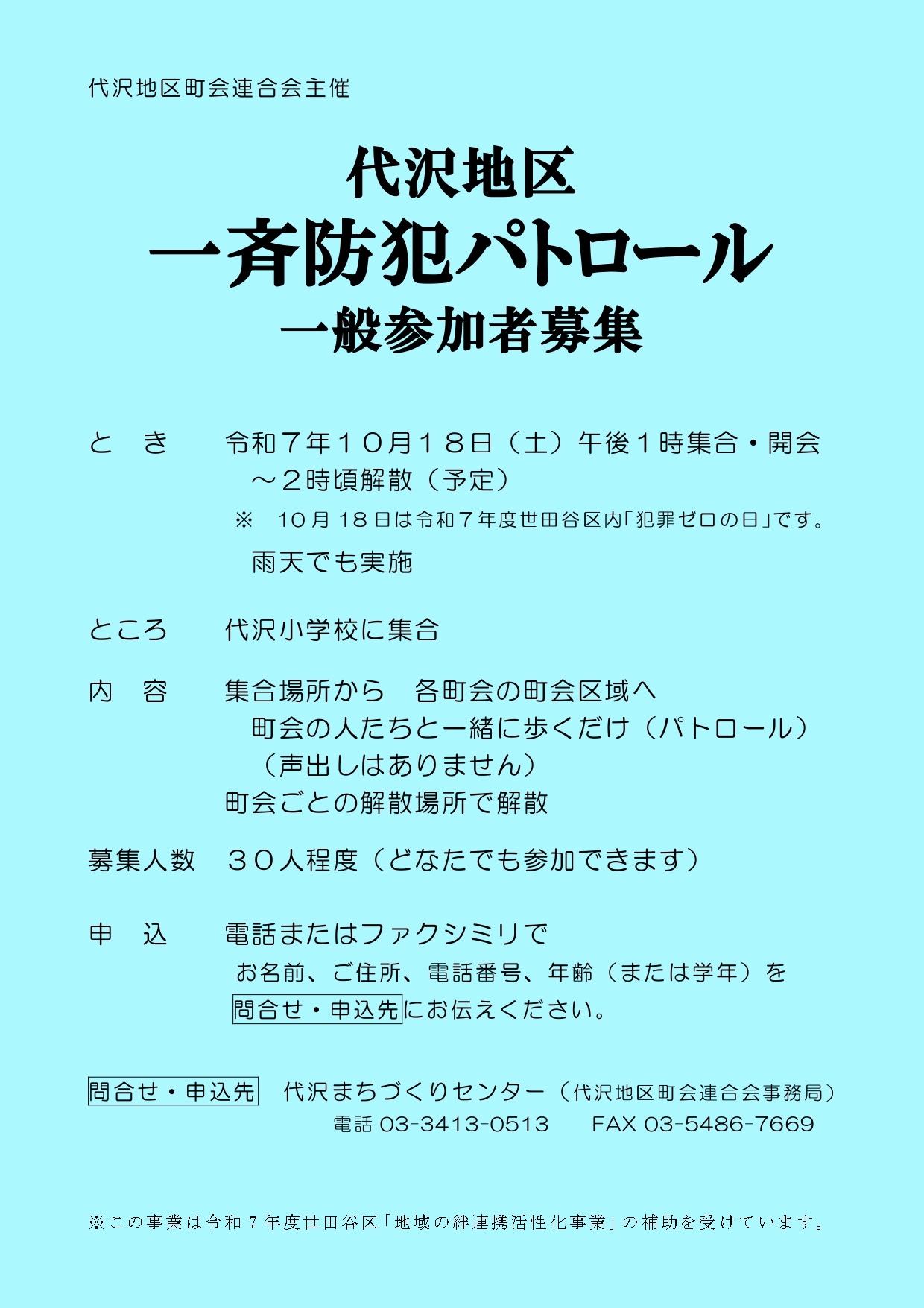 主な活動場所 | 担当エリア:代沢、池尻4(33~39) |